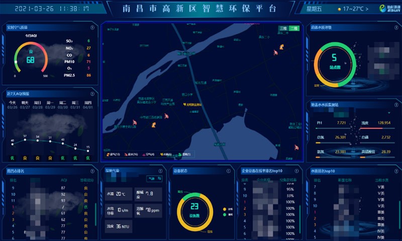 智慧环保基于“物联网”、“云计算”、“大数据”、“5G”等技术和环境专业模型,利用智能传感网络和互联网技术的集成初步建成覆盖生态环境质量、重点污染源、生态状况有关的空气、地表水、地下水、土壤和生物等要素的环境监测网络。
